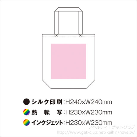 備考 刷り範囲:H240×W240mmシルク印刷 片面1色 ※フルカラー転写やインクジェット印刷はデータ確認が必要です