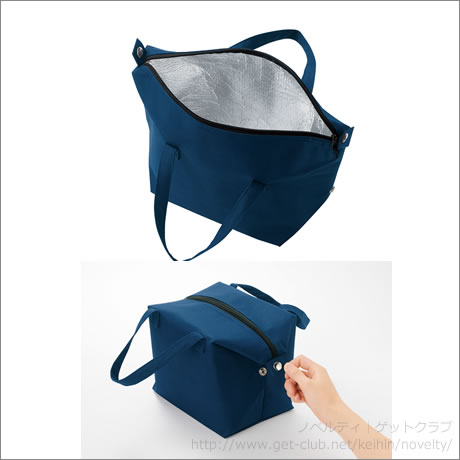 ボタンを外して通常のトートバッグ、ボタンを留めればキュービック型バッグと変化し、様々な入れ方が出来る多機能バッグです。カラフル5色の2WAYタイプのクーラーバッグです。