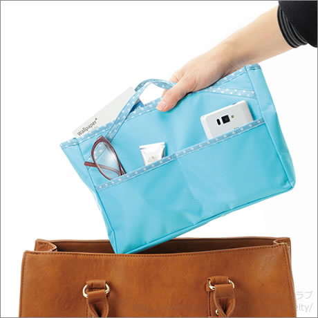 マチが薄めなのでお仕事バッグに入れてもスマートです。合計8個のポケットが付いた機能的なバッグインバッグ。