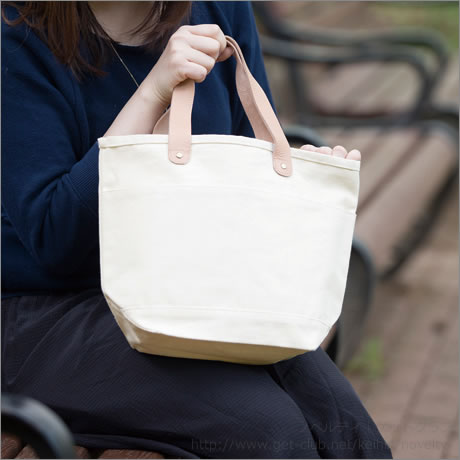 厚手キャンバスレザーハンドルトート(S) ナチュラル
