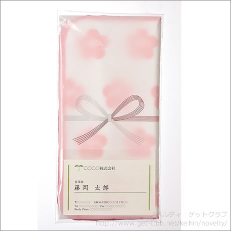 可憐で奥ゆかしい梅の花がプリントされたタオルハンカチ。名刺ポケット付OP袋に入って、ご挨拶のギフトにおすすめ。