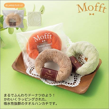 まるでドーナツのよう!にかわいくラッピングされた吸水性抜群のタオルハンカチです。