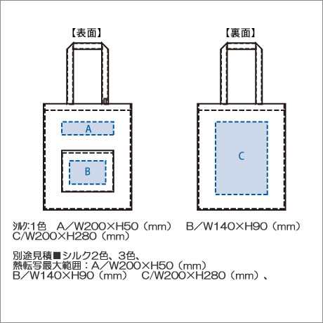 シルク:1色 A/W200×H50(mm) B/W140×H90(mm) C/W200×H280(mm)