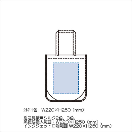 別途見積■シルク2色、3色、熱転写最大範囲:W220×H250(mm)、インクジェット印刷範囲 W220×H250(mm) |