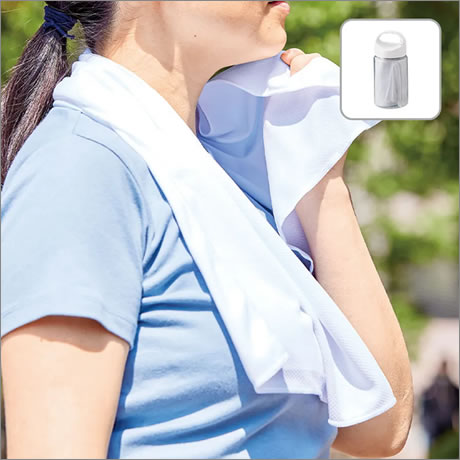 ボトル付き・抗菌防臭加工で安心の涼感フェイスタオルです。