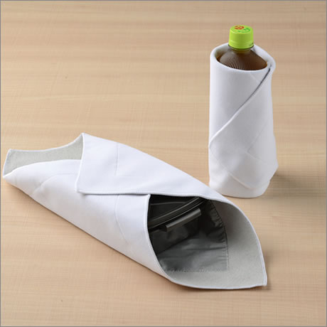 お弁当はもちろん、ペットボトルや折り畳み傘も形状に合わせて包むだけ。
