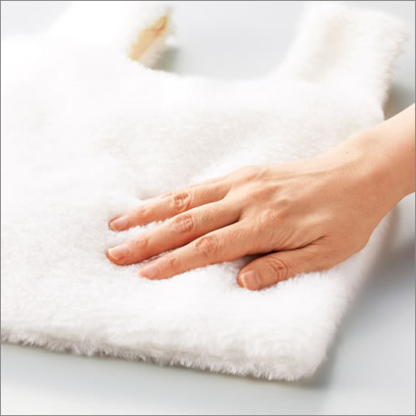 フェイクファーで毛足長めのふわふわな肌触り、