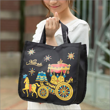 遠い国のおとぎ話に出てきそうな馬車が、黒地に落ち着いた色合いで優雅に描かれています。うれしい大きめサイズ。