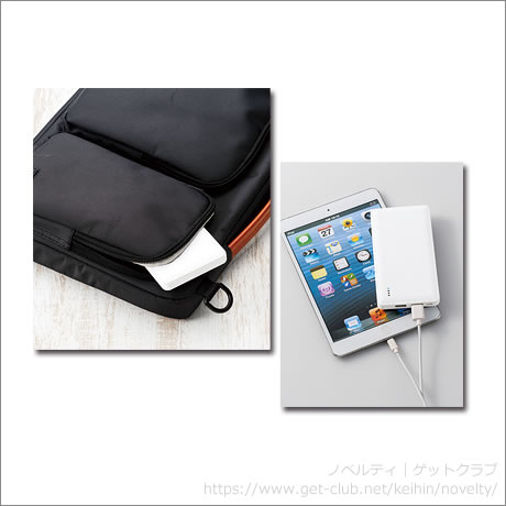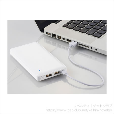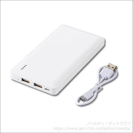 携帯しやすいフラットタイプのモバイルバッテリー。容量5000mAhだからスマートフォンだけでなくタブレットの充電にもおすすめです。旅行や出張にも活躍します。