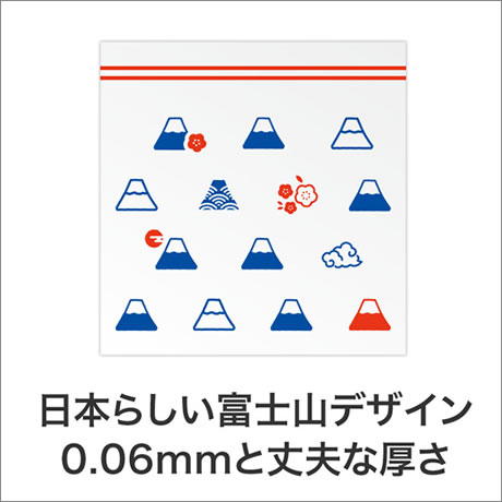 そんな日用品で人気のジッパーバッグに、縁起の良い富士山をかわいくデザインしました。