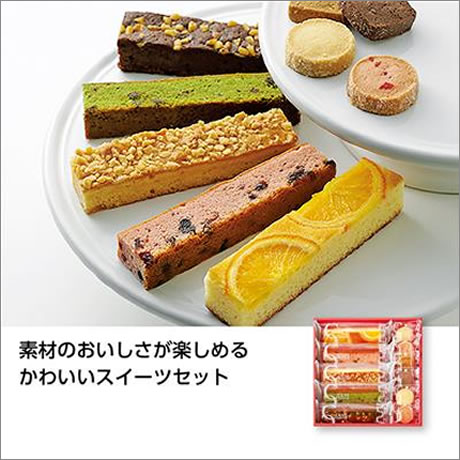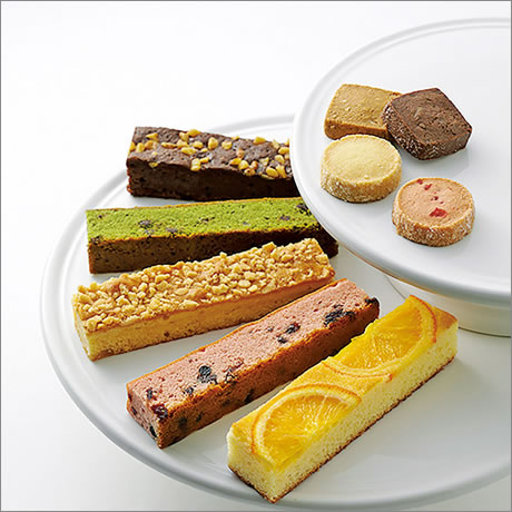 内容量/ケーキ×5(オレンジ・ミックスベリー・アップルシュトロイゼル・抹茶ショコラ・ニューヨークブラウニー)・クッキー×6(ストロベリー・塩バター 各2、ショコラ・キャラメル 各1)、
