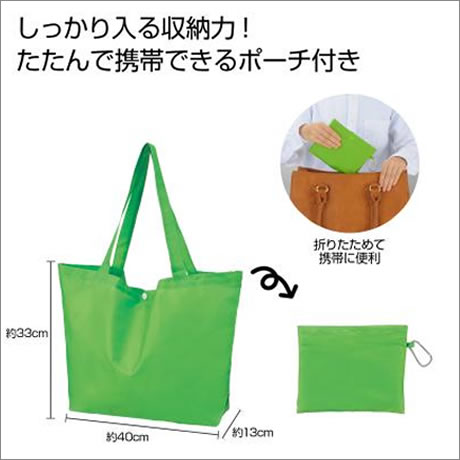 環境(“E”nvironment)に配慮する社会が常識になる生活で活躍するEcolorシリーズ。企業カラーに合わせてカラーチョイスができます しっかり入る収納力が自慢。たたんで携帯できるポーチ付き。厚さ約1.8cm/重量約80g(※必ず現品でご確認ください)でポストインに最適。
