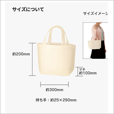 ランチタイムのお弁当などの持ち歩きや、ちょっとしたお出かけのバッグとしておすすめのサイズです。