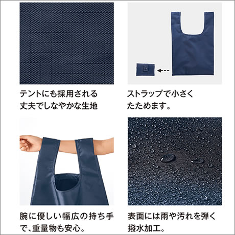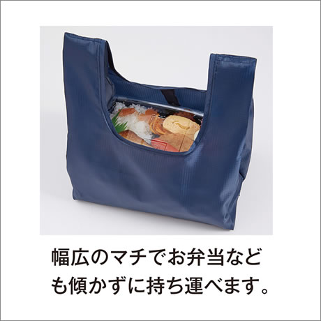 お弁当が傾かず運べる、マチの広い折りたたみトート。