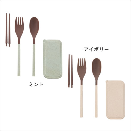 本体サイズ | ケース:113×55×23mm フォーク(使用時):全長175mm スプーン(使用時):全長175mm 箸(使用時):全長183mm |
