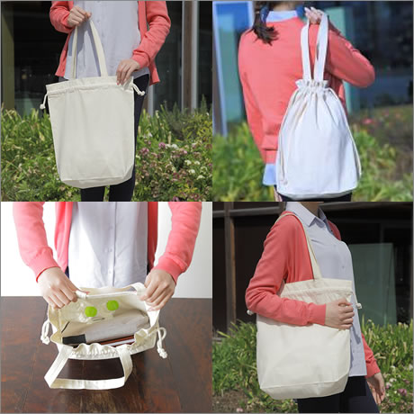 たくさん入るので、巾着としてはもちろん、トートバッグとしても十分活躍できる商品です。