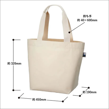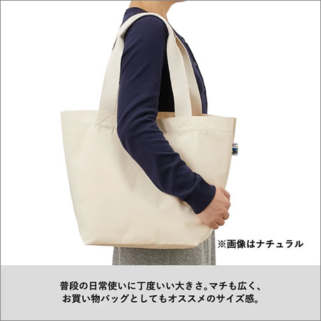 10オンスの厚みがあり丈夫で、お買い物バッグなどで普段使いにちょうどいい大きさです。