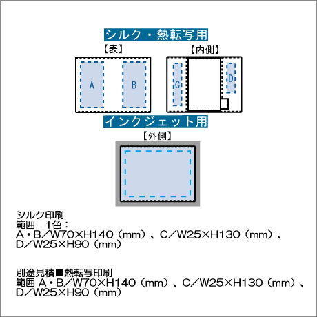 別途見積■熱転写印刷 範囲 A・B/W70×H140(mm)、C/W25×H130(mm)、D/W25×H90(mm) |