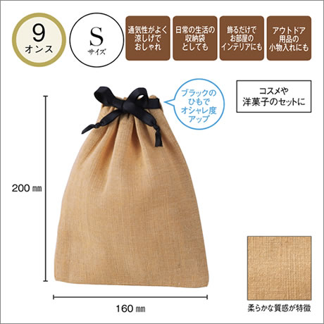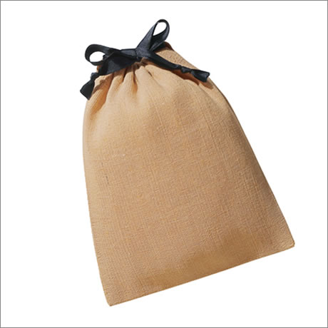 耐久性や通気性のあるジュートとしなやかなコットン。2種類のミックス素材を使った巾着です。