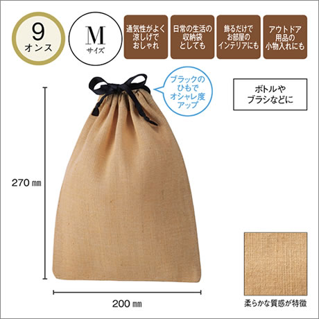 ジュート&コットン巾着(M)