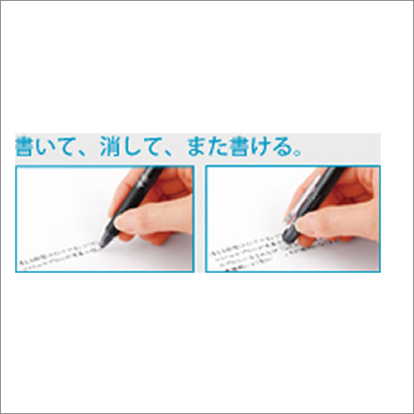 多色ゲルインキボールペン 消えるボールペンのクリップスライドノック式。書いたところをこするとインキが透明になります。こすっても消しカスはでません。