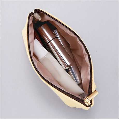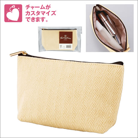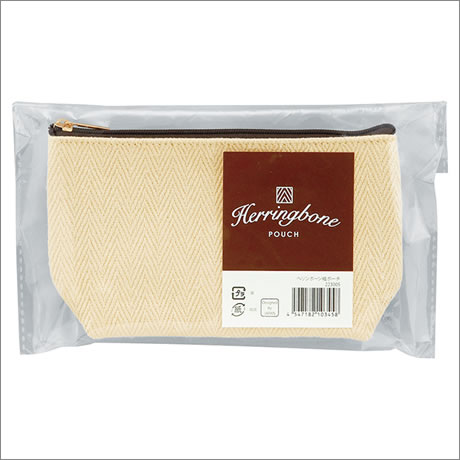 美しいヘリンボーン生地の風合いが軽やかな印象を感じさせるシンプルで使いやすいポーチ。
