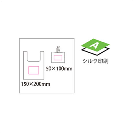 備考 シルク印刷1色:折りたたんで中央50×100mmまたは、広げてバッグ中央150×200mm