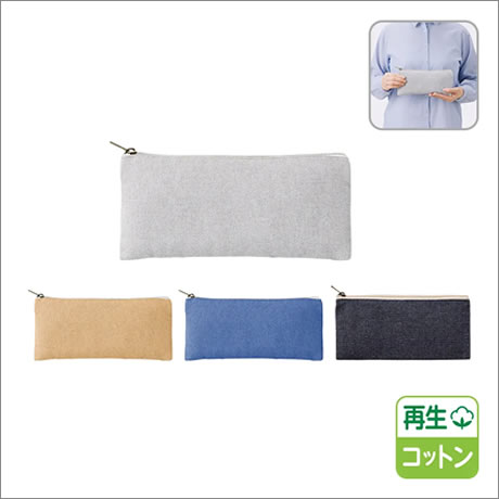 再生素材を使用した、普段使いしやすいフラット形状タイプのロングポーチです。