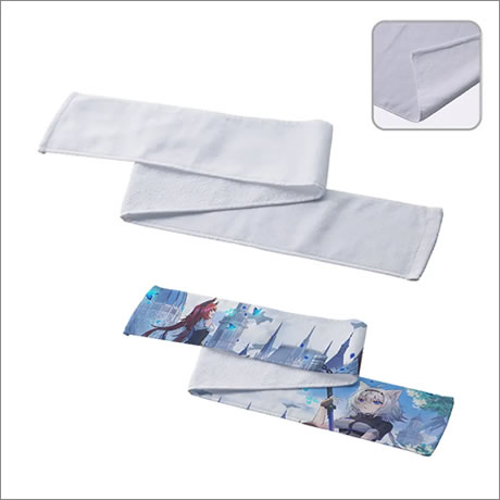 通常のマフラータオルより、縦幅が細長く首にかけやすい形状になっています。