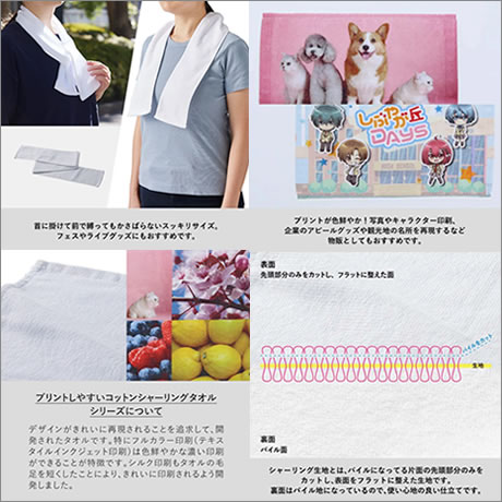 デザインがきれいに再現されることを追求して開発された、シャーリングネックタオルです。