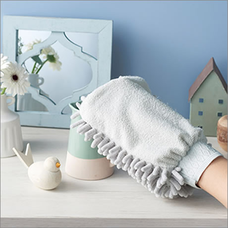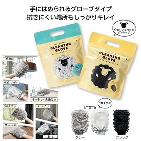 手にはめられるグローブタイプ、リビングや車、明やテレビなどの拭きにくい場所もしっかりキレイ。