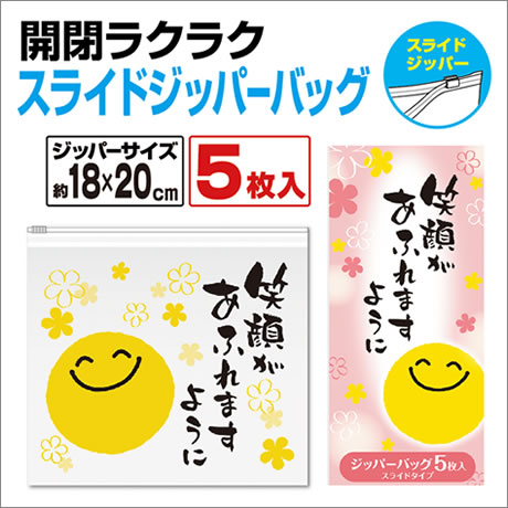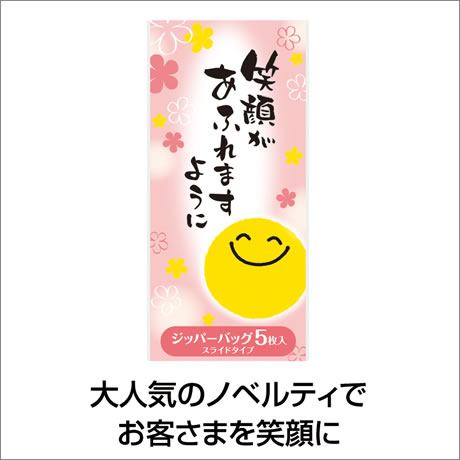 ホーム > ノベルティ >  郵便ポストインサイズ  >  笑顔があふれますように スライドジッパーバッグ(5枚入り)