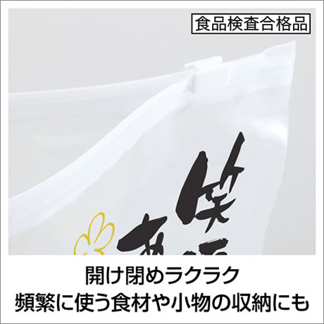 お子さまからお年寄りまで、誰でも簡単に開け閉めできる、スライドタイプのジッパーバッグです。