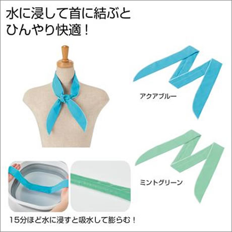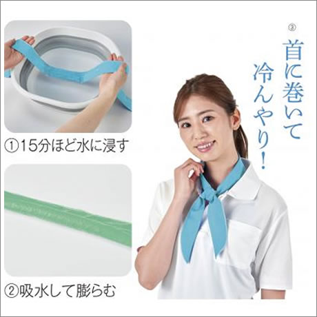 中央部分の吸水性ポリマーが膨らめばひんやり気持ちいい。15分ほど浸してからご使用ください。