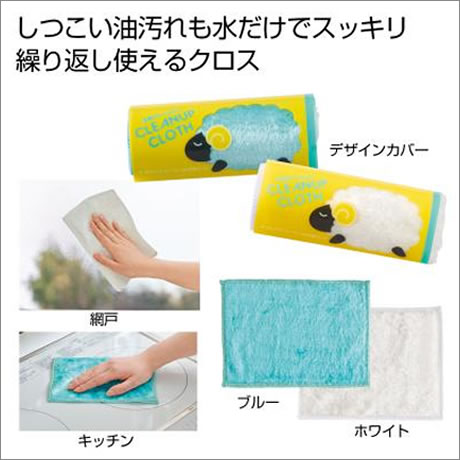 ひつじのポップなカラーのパッケージが目を惹く、極細繊維のおそうじクロス。