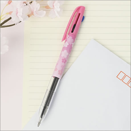 可憐な桜柄のボールペンは、黒、赤、青の使いやすい3色ボールペン。