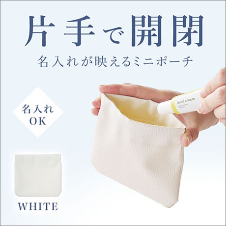 カラモ レザー調バネ式ミニポーチ ホワイト