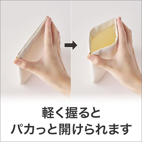 開口部は「バネ式」になっており、片手でカンタンに開閉が可能!小物を収納するのに便利です。