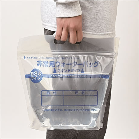 緊急、災害時の必要な水の確保に。立てて使用ができる自立タイプ。