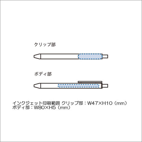 備考 インクジェット印刷範囲 クリップ部:W47×H10(mm) ボディ部:W80×H5(mm)