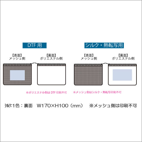 備考 シルク:1色:裏面 W170×H100(mm) ※メッシュ側は印刷不可