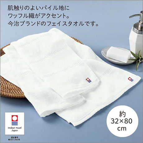 肌ざわりのよりパイルジにワッフル織がアクセント。今治のフェイスタオルです。