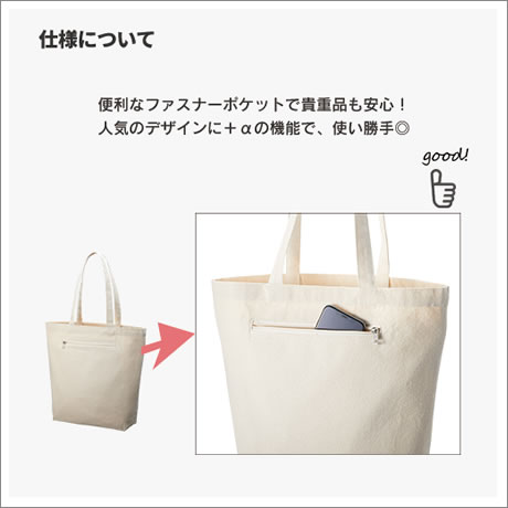 - キャンバスファスナーポケットトート ナチュラル