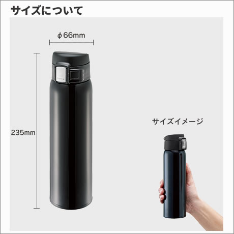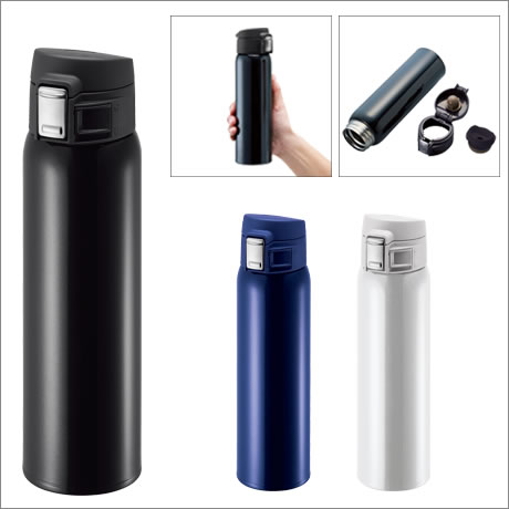 片手で簡単に開閉出来るワンタッチボトル。口元にフィットする小さめの飲み口で、口触りも良く飲みやすい仕様に。飲み口はロック機能付なのでバッグに収納しても安心です。真空2重構造なので、温度をしっかりキープ。分解もしやすく手入れもしやすい衛生的な構造もポイントです。名入れは回転シルク印刷でほぼ全周印刷が出来ます。ワンタッチ開閉タイプはスポーツ向けの他、車利用者にも好まれる形の為、物販品としてのご利用や、来場・成約記念品としてのご利用もおすすめです。サイズ違いで360mlもございます。