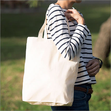 A4サイズが収容可能で、展示会カタログ用バッグやアーティスト物販まで幅広い用途にご利用いただけます。肩かけ利用も可能です。エコバッグとしてもおすすめです。
