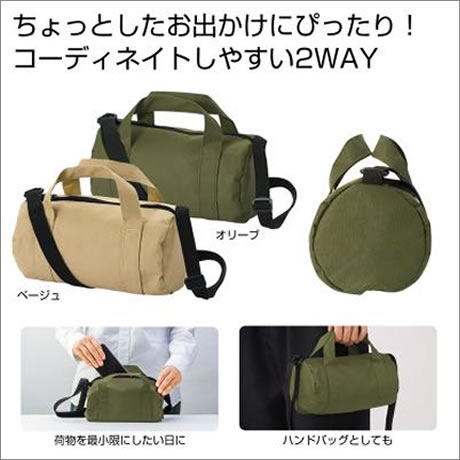 肩掛けできる筒形のバッグで、ちょっとしたお散歩などで活躍します。