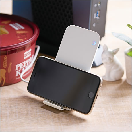 タテ・ヨコ置き対応のスタンドを兼ねたワイヤレス充電器。面倒なケーブルの抜き差し要らずでラクラク。