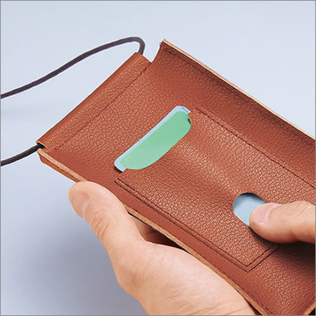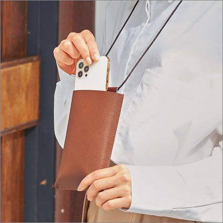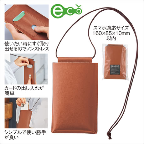 - スフィア・リサイクルレザースマホネックポーチ(カードポケット付き)(キャメル)