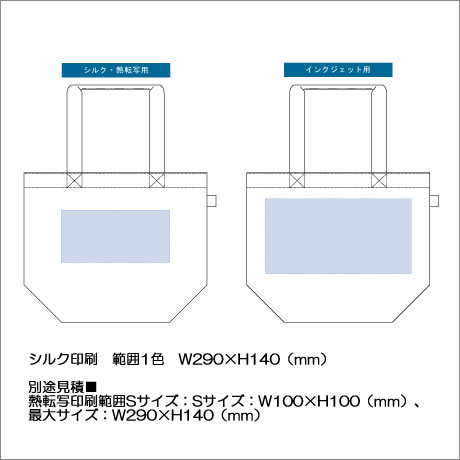 別途見積■熱転写印刷範囲Sサイズ:Sサイズ:W100×H100(mm)、最大サイズ:W290×H140(mm) |