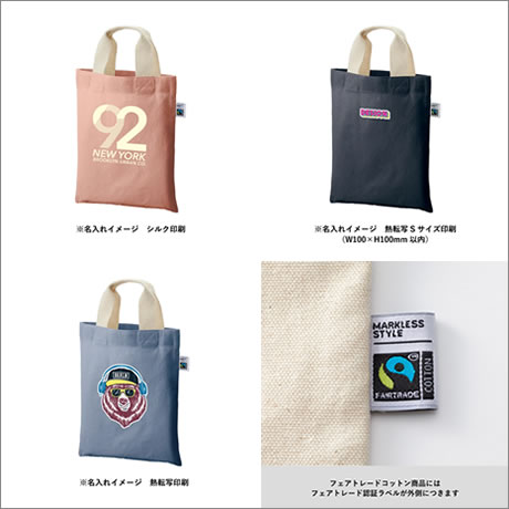フェアトレードコットンを使用したA4サイズのフラットバッグです。
